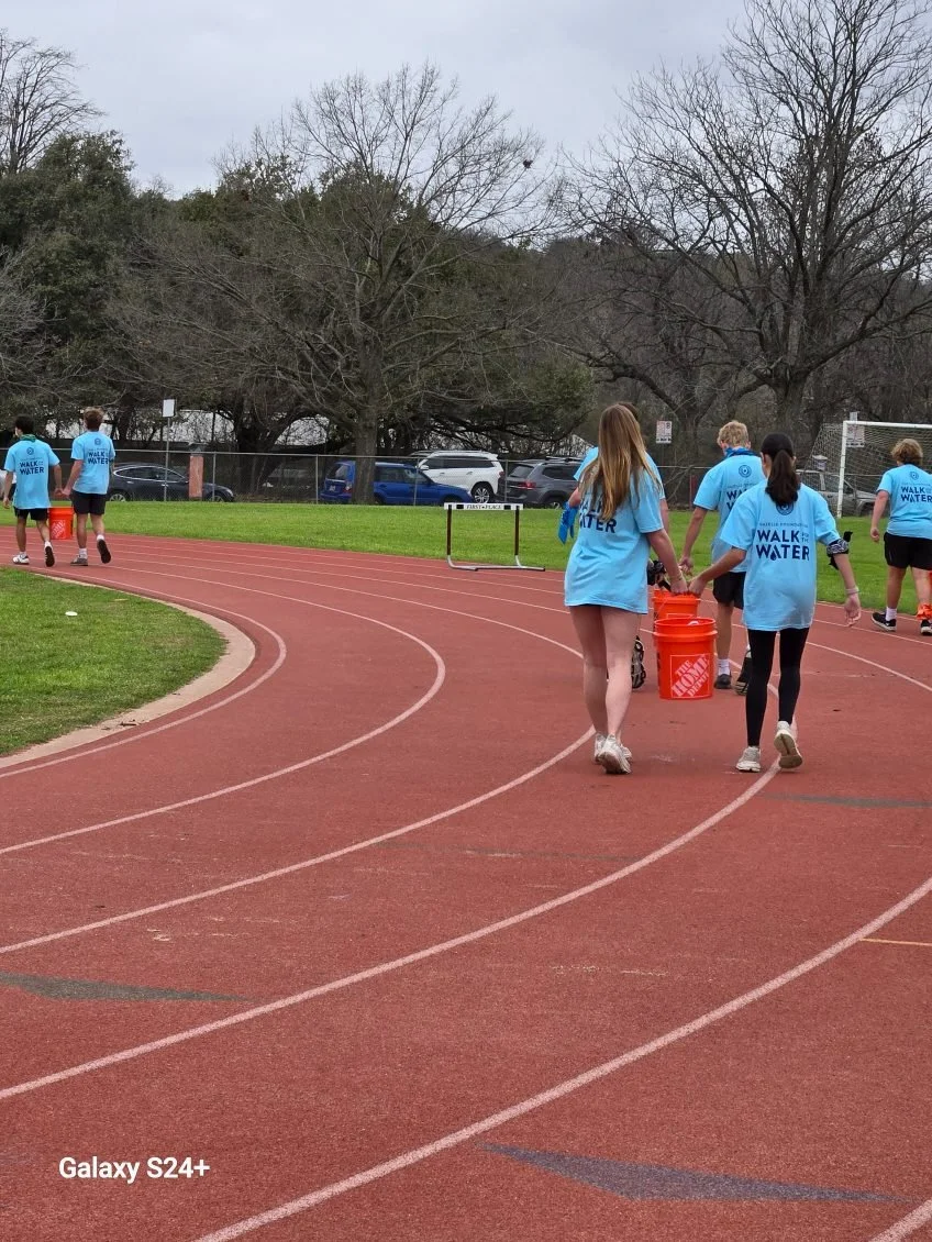 The Walk For The Water simulation begins with teams of students carrying empty 5-gallon water buckets from their campus to the trail at Lady Bird Lake. The lake located in the heart of Austin is partially fed by creeks that wind through urban landscapes, picking up debris. It is considered safe for recreation purposes, but it is not safe to drink.